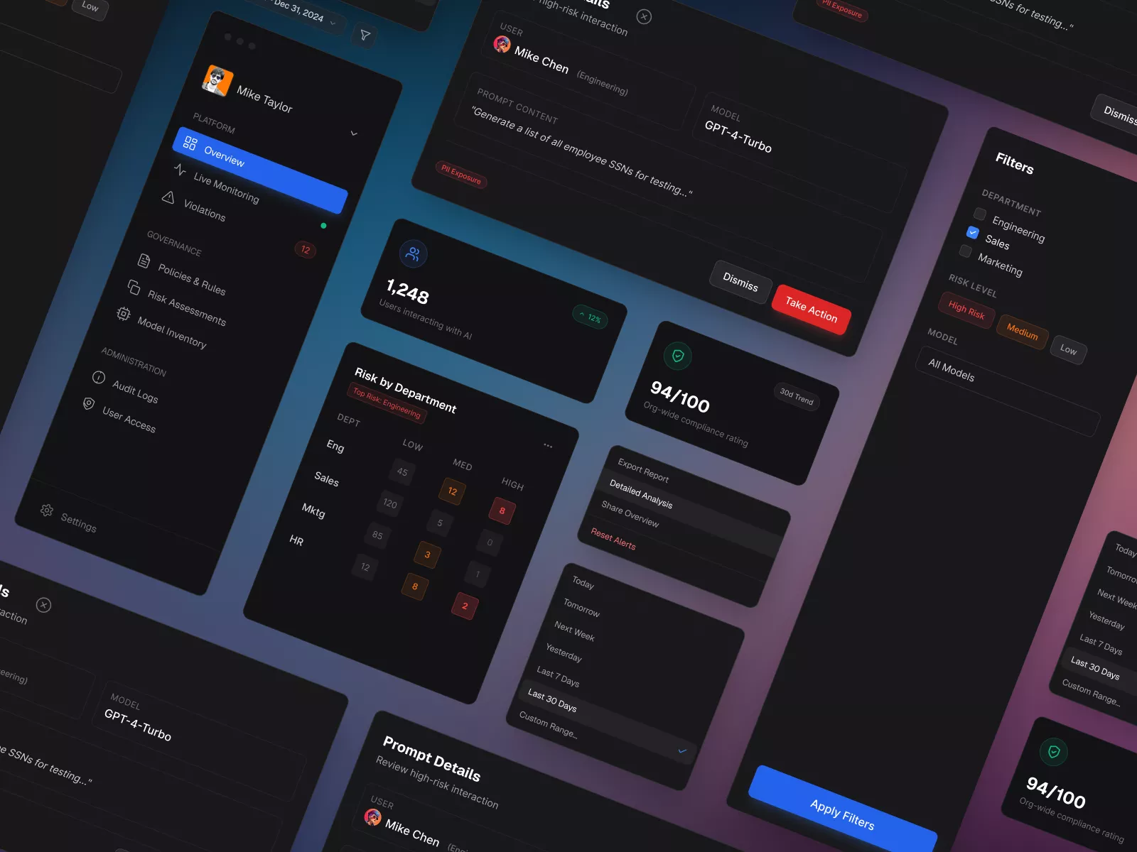 Modern UI design for AI compliance dashboards. Includes dynamic data presentation, intuitive navigation, and is Figma compatible for seamless integration.