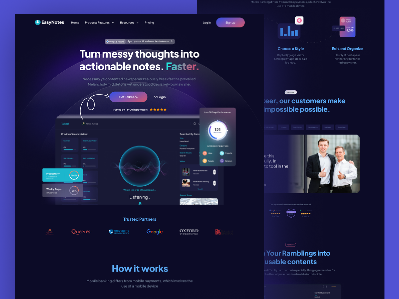 EasyNotes - AI Based Note Taking SaaS App Website Design