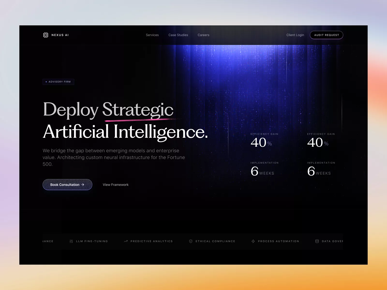 Modern and sleek UI design template for AI advisory firms with customizable features and seamless integration, perfect for enhancing digital presence.