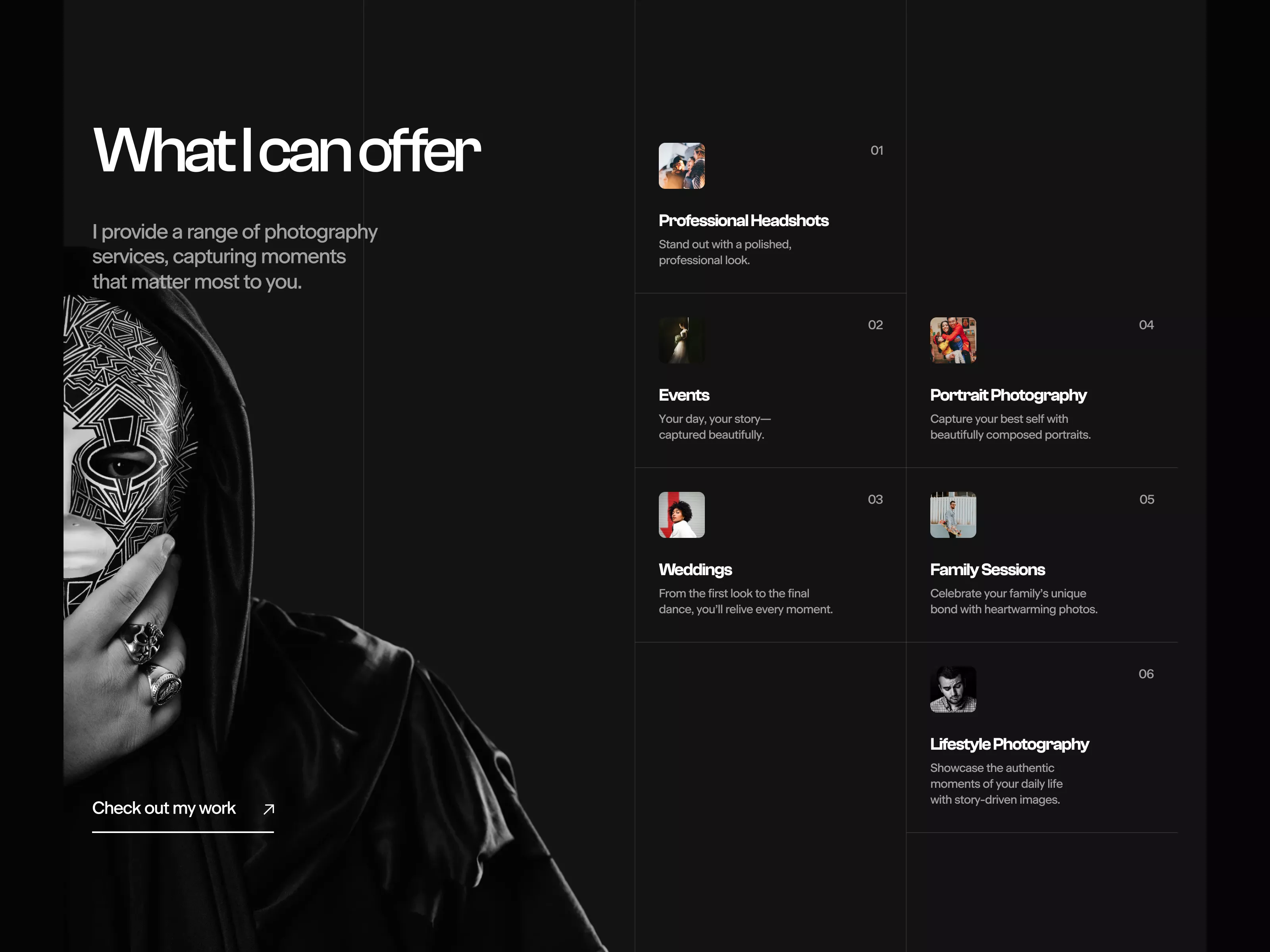 Sleek UI design for storytelling portfolios, perfect for creatives. Easily customizable in Figma, ideal for photographers seeking striking, user-friendly websites.