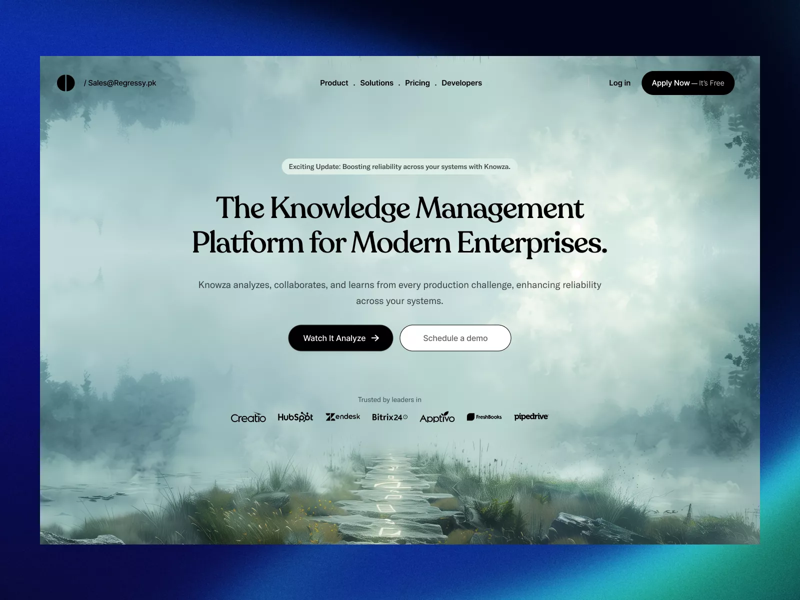Modern and sleek UI design in Figma, ideal for enterprise knowledge management sites. Features responsive layouts, bold typography, and serene backgrounds.