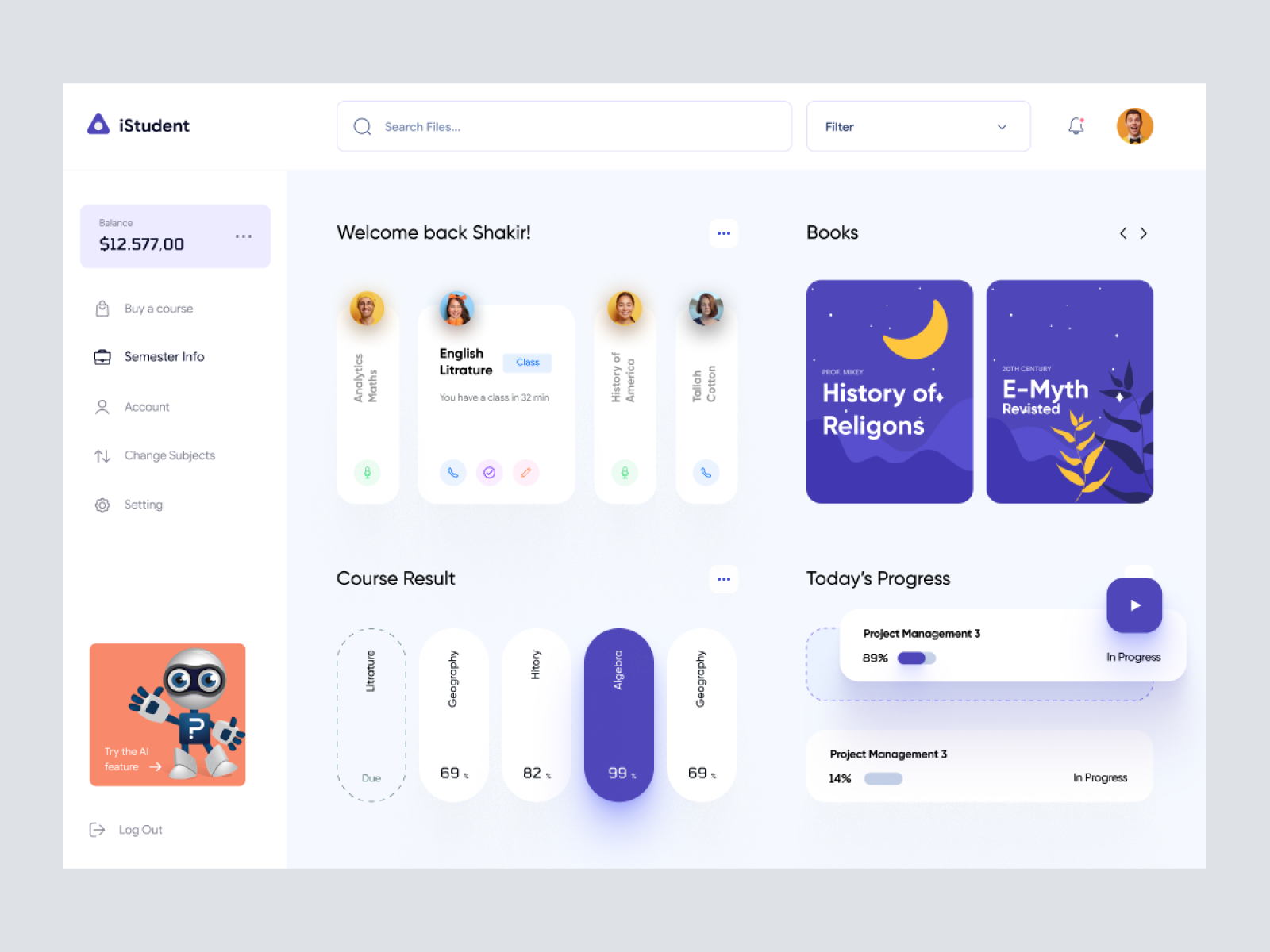 iStudent - Student Dashboard UI Concept