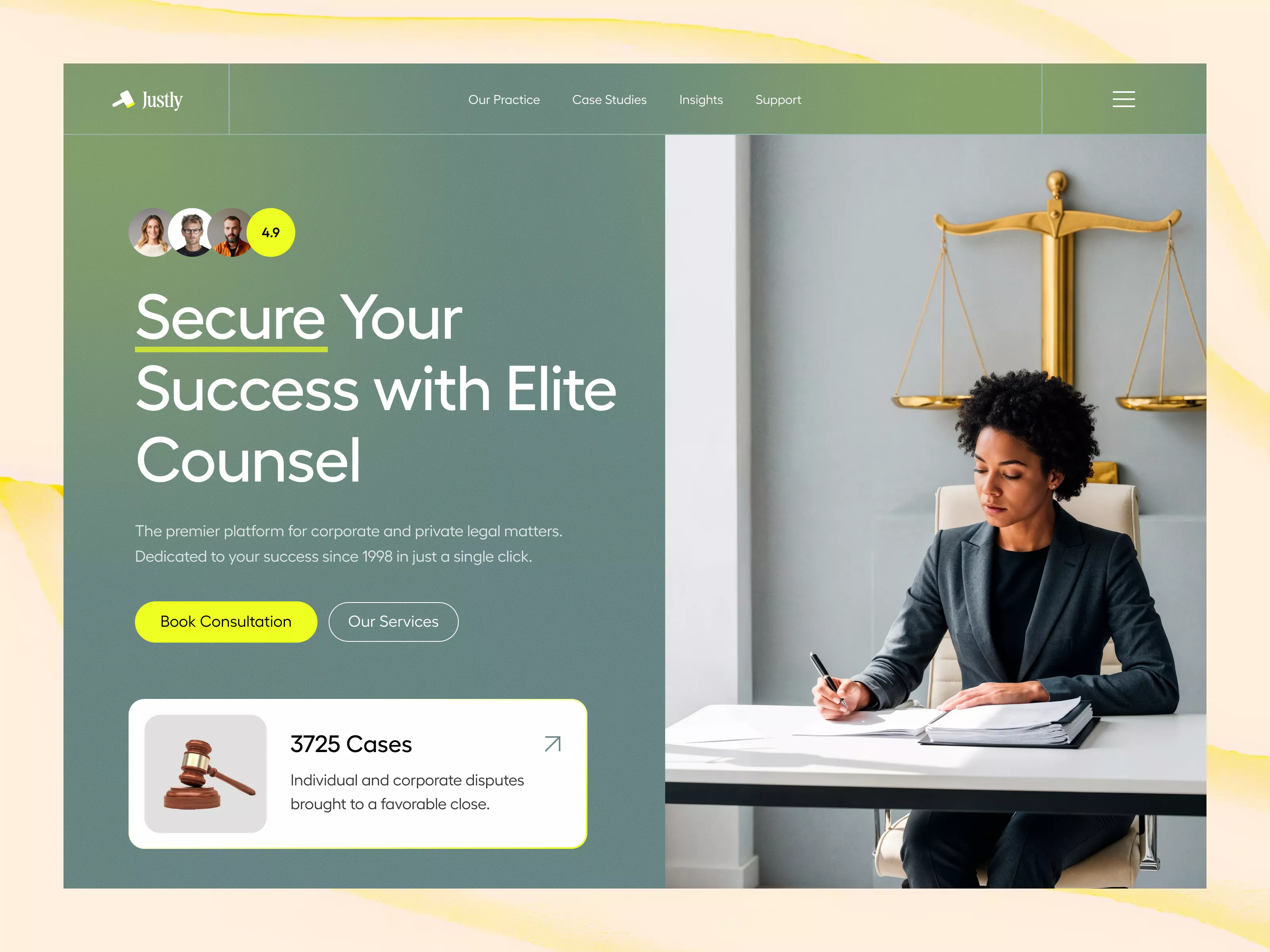 Upgrade your legal service platform with our elegant and effective UI design, featuring easy navigation, strong CTAs, and professional imagery in a ready-to-use Figma file.