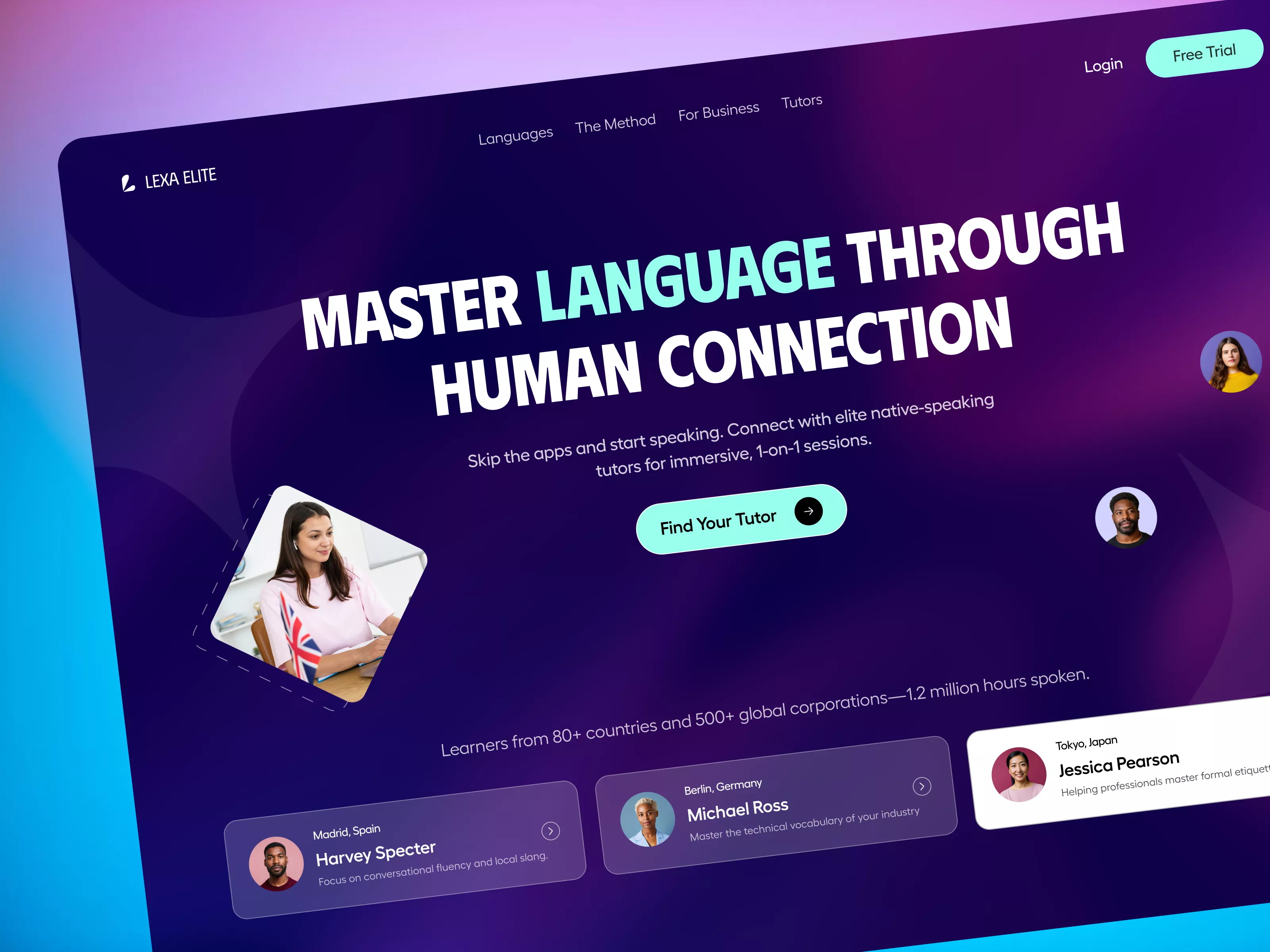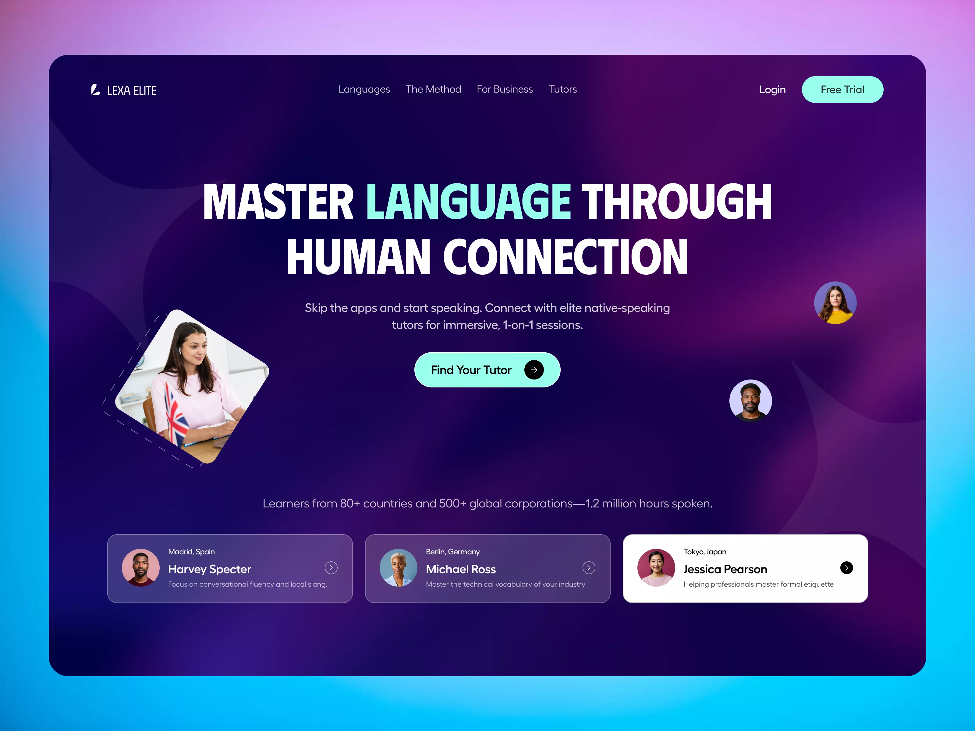 Lexa Elite - High-End Language Learning Hero Section