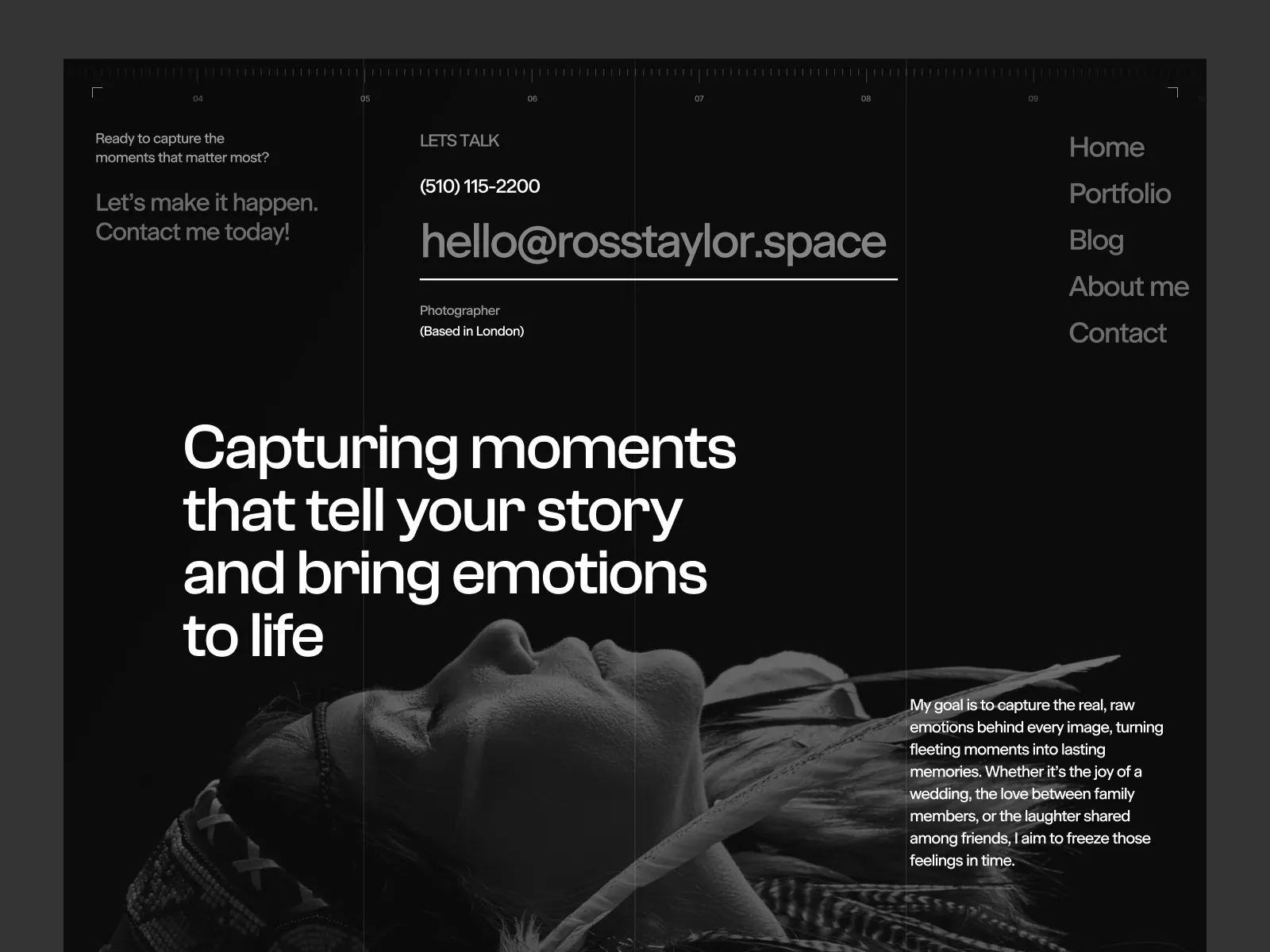 Introducing a sophisticated and modern UI design that captures the essence of professionalism and creativity. This layout is specifically tailored for photographers and creative professionals who wish to showcase their talent while maintaining a minimalistic and elegant aesthetic. The design emphasizes clear typography and a straightforward navigation experience, ensuring users can easily access vital information without any distraction. With a prominent call to action inviting potential clients to contact, the layout is designed not only to inform but to engage and convert. The smooth monochrome palette enhances the visual storytelling, allowing the imagery and text to harmonize seamlessly. This Figma file is fully editable, enabling designers to effortlessly adapt the components to meet specific branding needs. The design ensures responsiveness, ensuring a consistent experience across all devices. Perfect for both seasoned professionals and aspiring creatives, it’s a dynamic solution that helps communicate brand stories effectively. Whether you're highlighting your portfolio, sharing your blog, or simply introducing yourself, this design sets a high bar of aesthetic finesse.