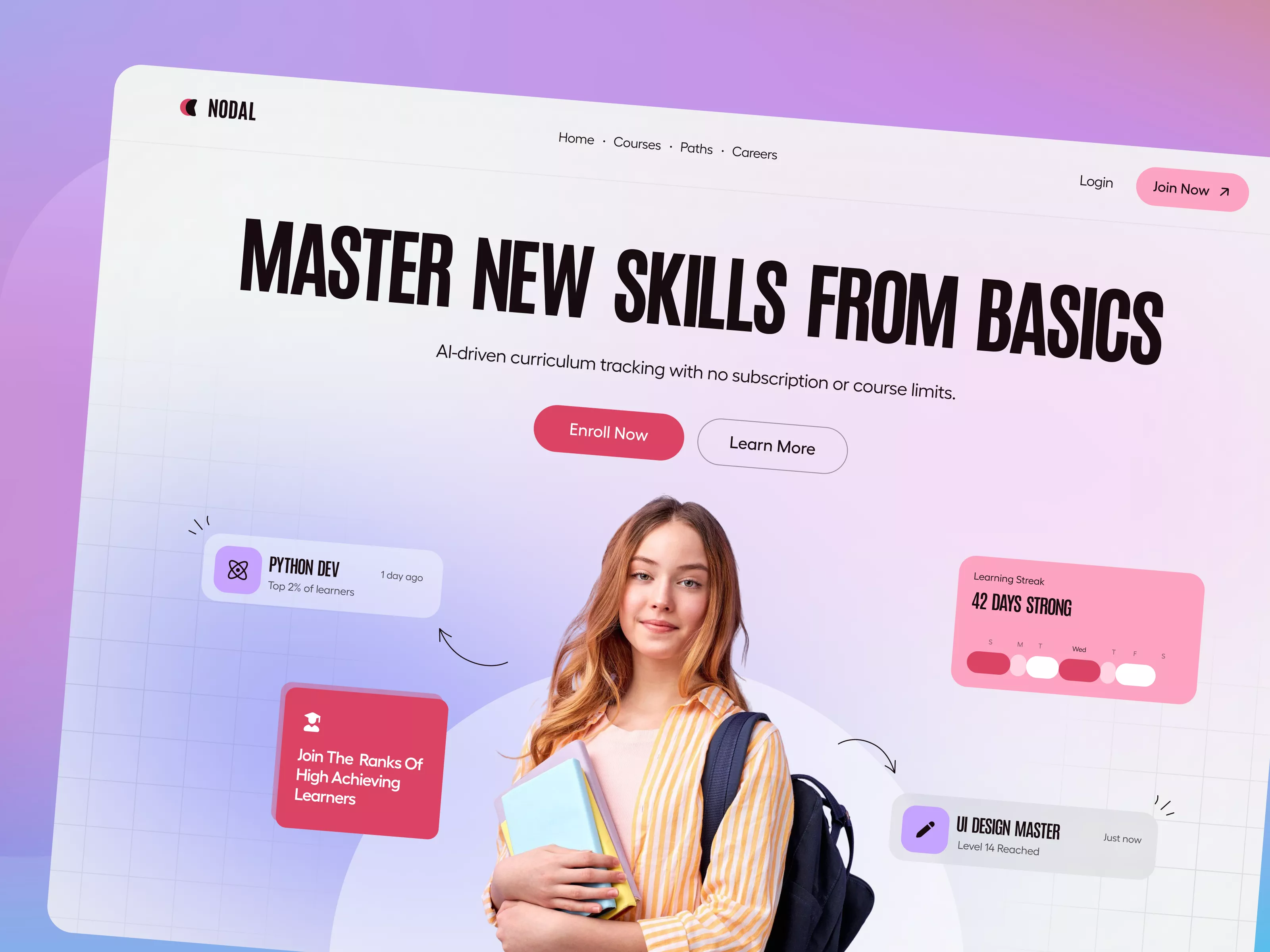 Stunning UI design for e-learning, features AI-driven curriculum tracking. Engage learners with a modern layout and interactive components, Figma ready.