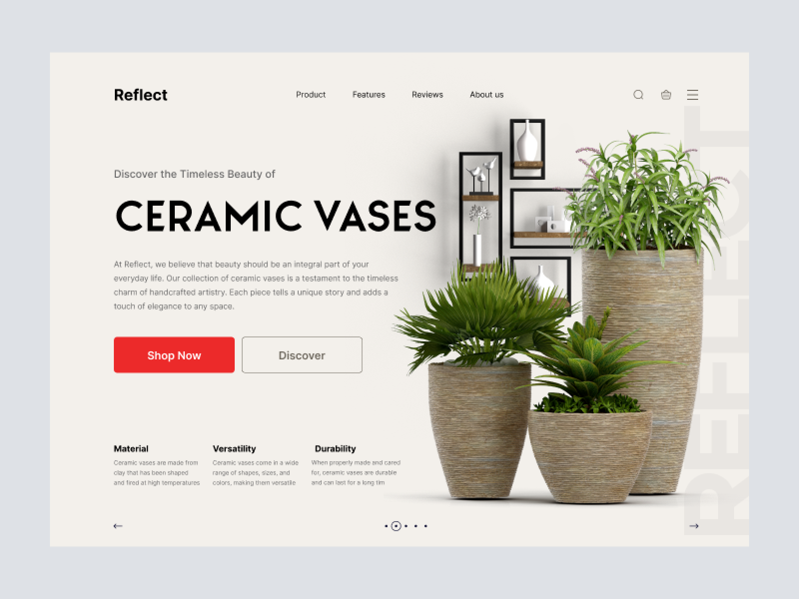 hero, header, why us, stats, about us, featured products, testimonials, footer|